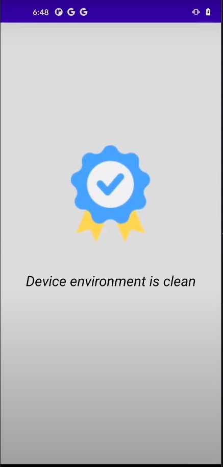 Alright, the app is no longer displaying any complaints, and it now indicates that the device environment is clean. We have successfully bypassed all the checks!