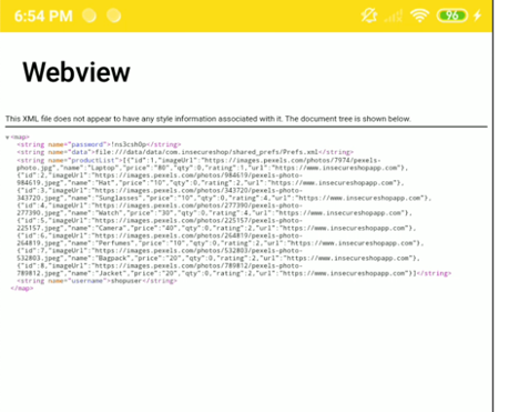 Here we will be exploring the WebView related vulnerabilities in the InsecureShop application. The aim here would be to exploit the insecure implementation of the WebView and exfiltrate the sensitive information stored inside the application sandbox on the victim device.