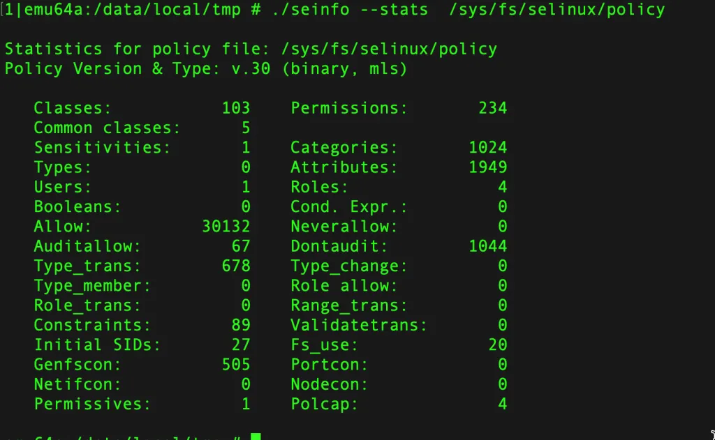 ./seinfo -c /sys/fs/selinux/policy