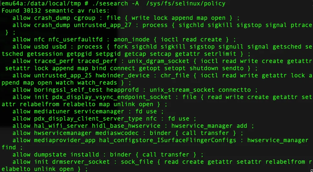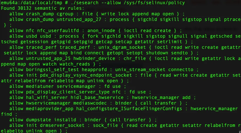 ./sesearch -A /sys/fs/selinux/policy