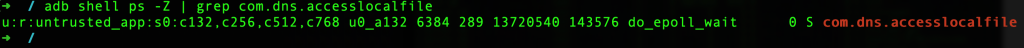 adb shell ps -Z | grep com.dns.accesslocalfile