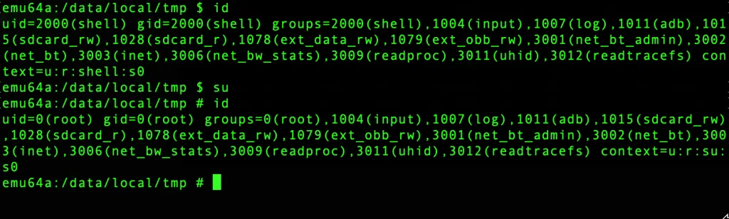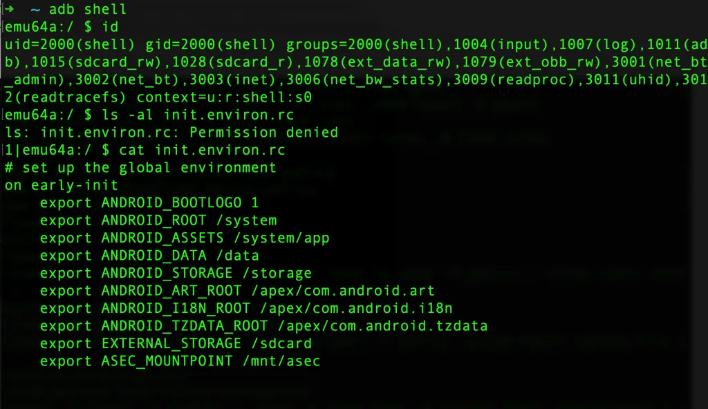 - ADB shell into the device as a normal user