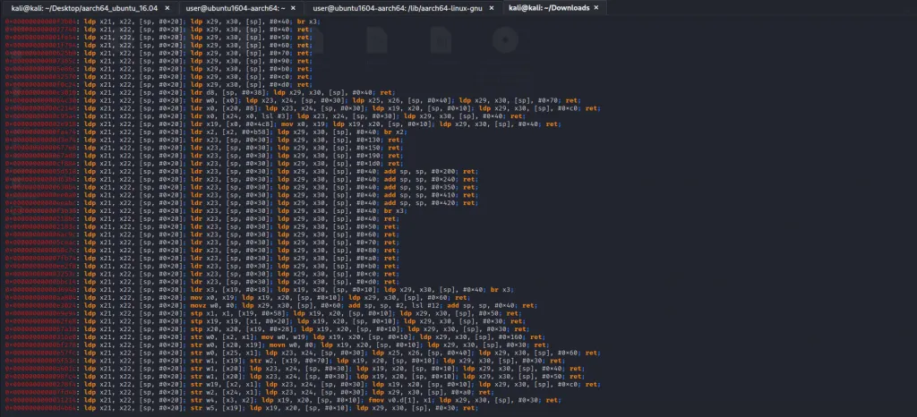 From the output of ropper, we can see that most of the gadgets displayed here are not useful and there is a lot of noise in these gadgets. When searching for gadgets, prioritize those with minimal redundant instructions and ensure they end with a “ret” instruction. Having fewer redundant instructions simplifies the exploit, saving time and effort that would otherwise be spent dealing with unnecessary instructions. Additionally, for seamless execution of subsequent gadgets, it is essential for each gadget to conclude with a ret instruction. Let’s try with ldp instructions.