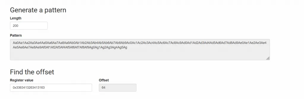 We can see above that Program Counter (PC)** was overwritten with “A”s which was our input. Now let us find the position of the input that overwrites PC. For this use a pattern generator. We will be using the below-mentioned online tool.