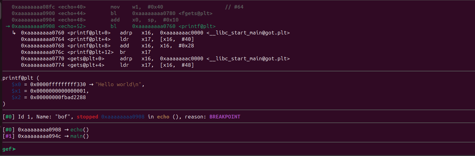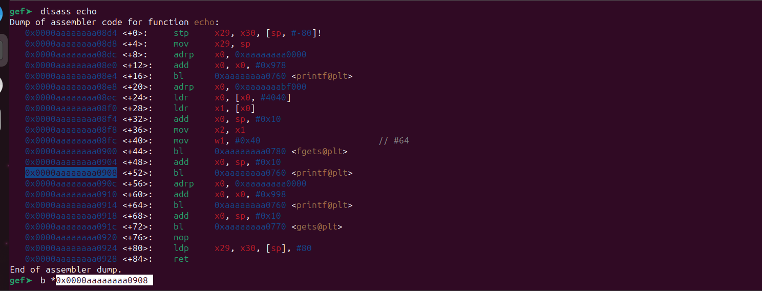 - ARM64 environment with gef and gdb server.