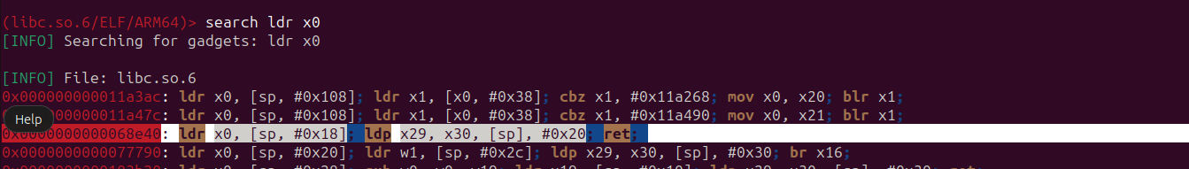 (libc.so.6/ELF/ARM64)> search ldr x0