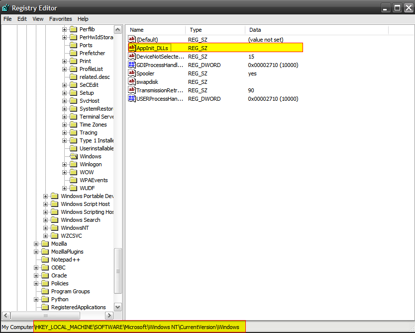 - Additionally, we saw that Windows API call - RegSetValue for changing a value in the Registry at the following path: HKLMSOFTWAREMicrosoftWindowsNTCurrentVersionWindowsAppInit_DLLs