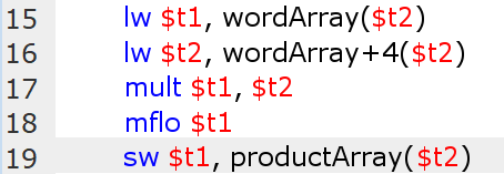 Finally, the product’s value is stored back into memory using the store command (sw = store word).