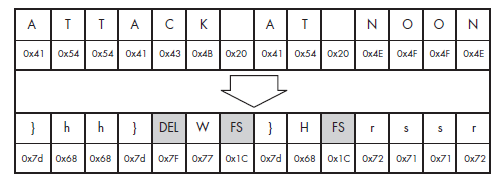 If we perform a XOR operation with the key on each character in our string, we will get a completely different representation of the existing string, meaningless in human eyes.