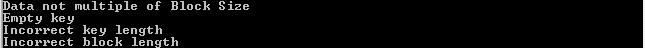 In addition, to a number of interesting functions: WriteFile, CreateThread, we can see several error message strings: Data not multiple of block size, Incorrect key length, and Empty key.