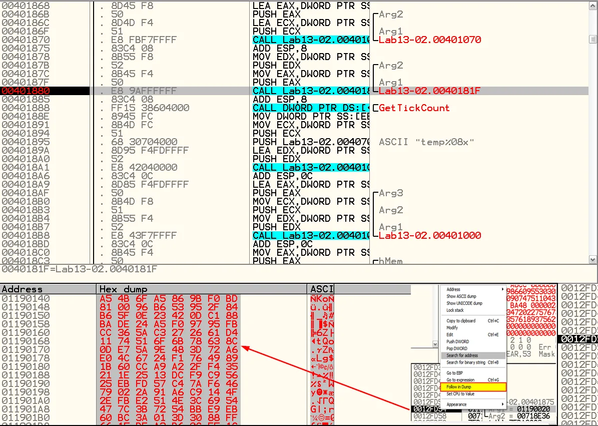 Discover which functions perform the encryption/encoding and which additional memory addresses are related to the process (for example, strings in the data segment).