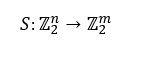 Meaning, each such Boolean function fi returns us 0 or 1. Therefore, the final output we get will be m bits, or more precisely an m-ordered form of the sort: