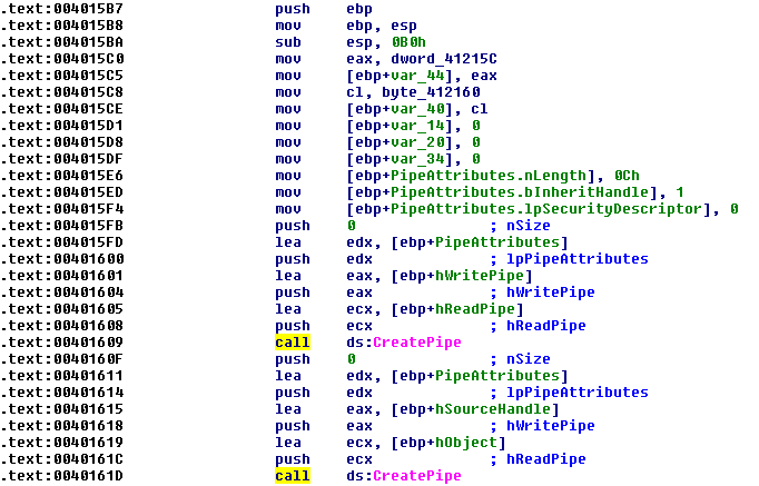 - Later on, we see a creation and linking of pipes to standard output, input, error as is commonly done when creating communication between standard input to output: