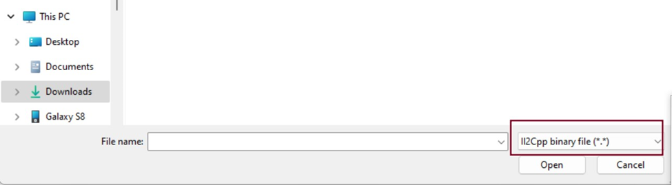 Download the il2cppdumper from the official GitHub page, then open the executable program. You will see a window opening to browse for files: