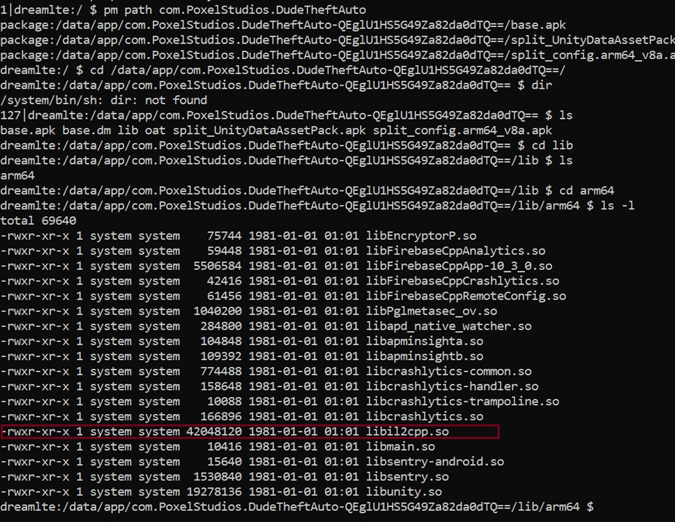 In recent years, game developers have become more vigilant, often removing the il2cpp.so file from the APK to prevent easy reverse engineering. Nonetheless, numerous workarounds exist for this issue. Sometimes, developers encrypt the metadata file to prevent dumping, although solutions to this problem also exist. For those interested, detailed research on this topic can be found at: https://katyscode.wordpress.com/2021/02/23/il2cpp-finding-obfuscated-global-metadata/.