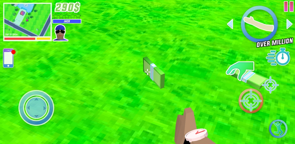 We try to find any function or action that deals with money. We see on the loading page that we can be taxi drivers to earn money, but there is a much easier way. Just throw money on the ground, then pick it up again: