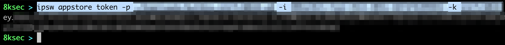 command: ipsw appstore token -p PATH_TO_P8_FILE -i ISSUER_ID -k KEY_ID