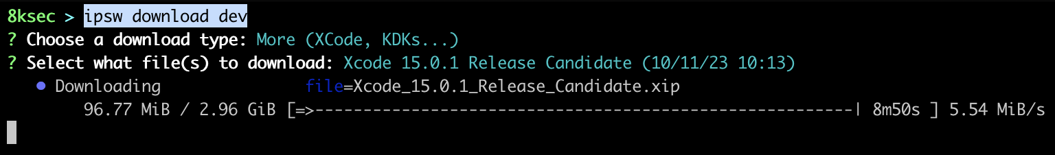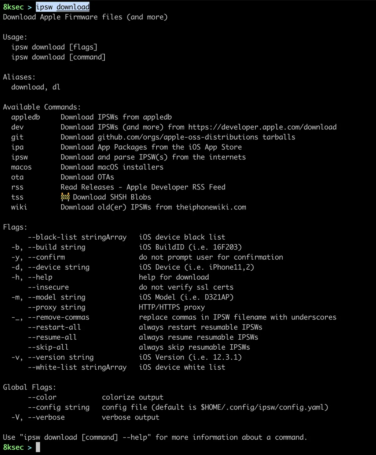 ipsw download offers other options such as git, ipa but to leave a room for the rest of the commands, we will skip those.