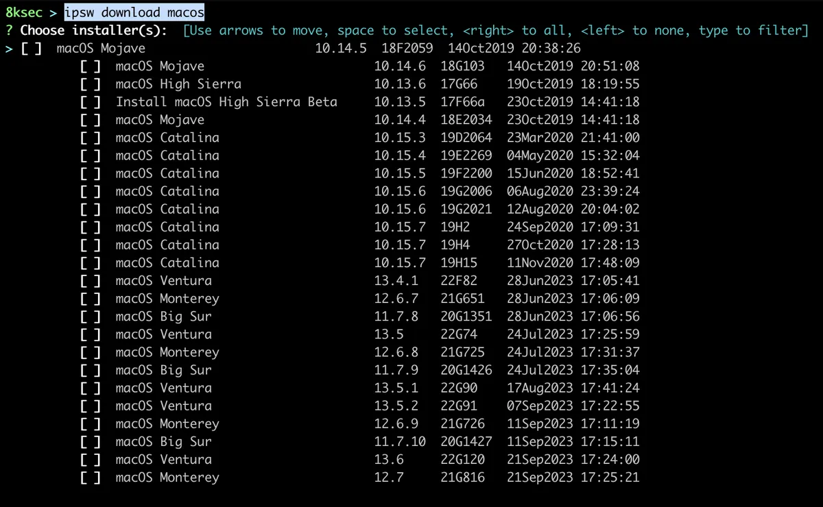 Another useful subcommand for ipsw download is macos which allows you to download macOS installers.