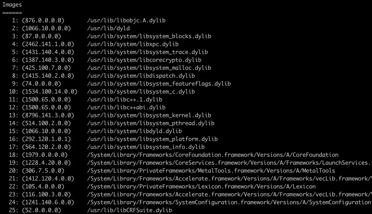 dyld stands for dynamic loader and it’s job is to load the shared libraries into the memory of the process. To speed-up the loading process, these are all combined into the single file called dyld shared cache. We will cover a couple of these functionalities as there is a lot of them.