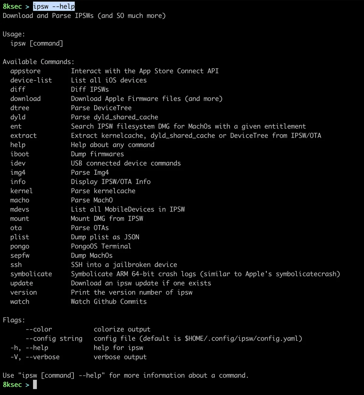 We will go over each of command to see what it does and how to use it, but before we do that, we first need to get ipsw. We can build ipsw from the source or we can download one of the prebuilt binaries available on the GitHub repository.
