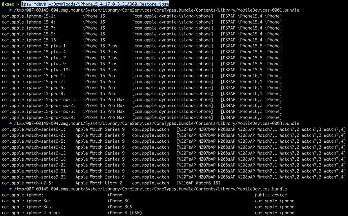 ipsw mdevs allows us to see all mobile devices inside of specific IPSW file.