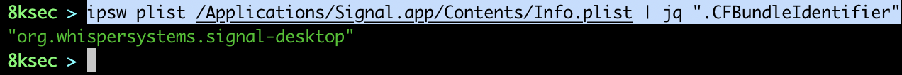We can also pass the output of this to jq to get let’s say bundle identifier.