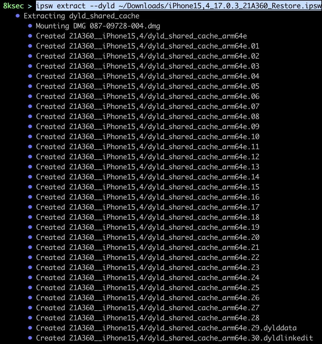 command: ipsw extract --dyld PATH_TO_IPSW_FILE