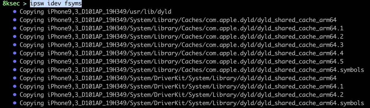 command: ipsw idev fsyms
