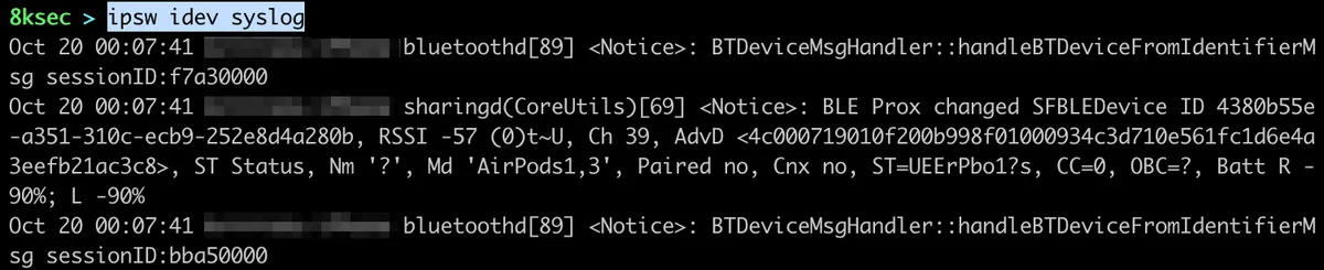 command: ipsw idev syslog