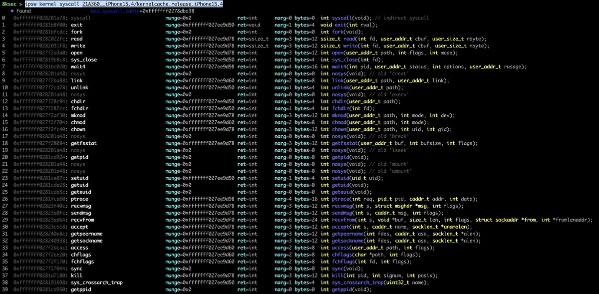 command: ipsw kernel syscall PATH_TO_KERNEL