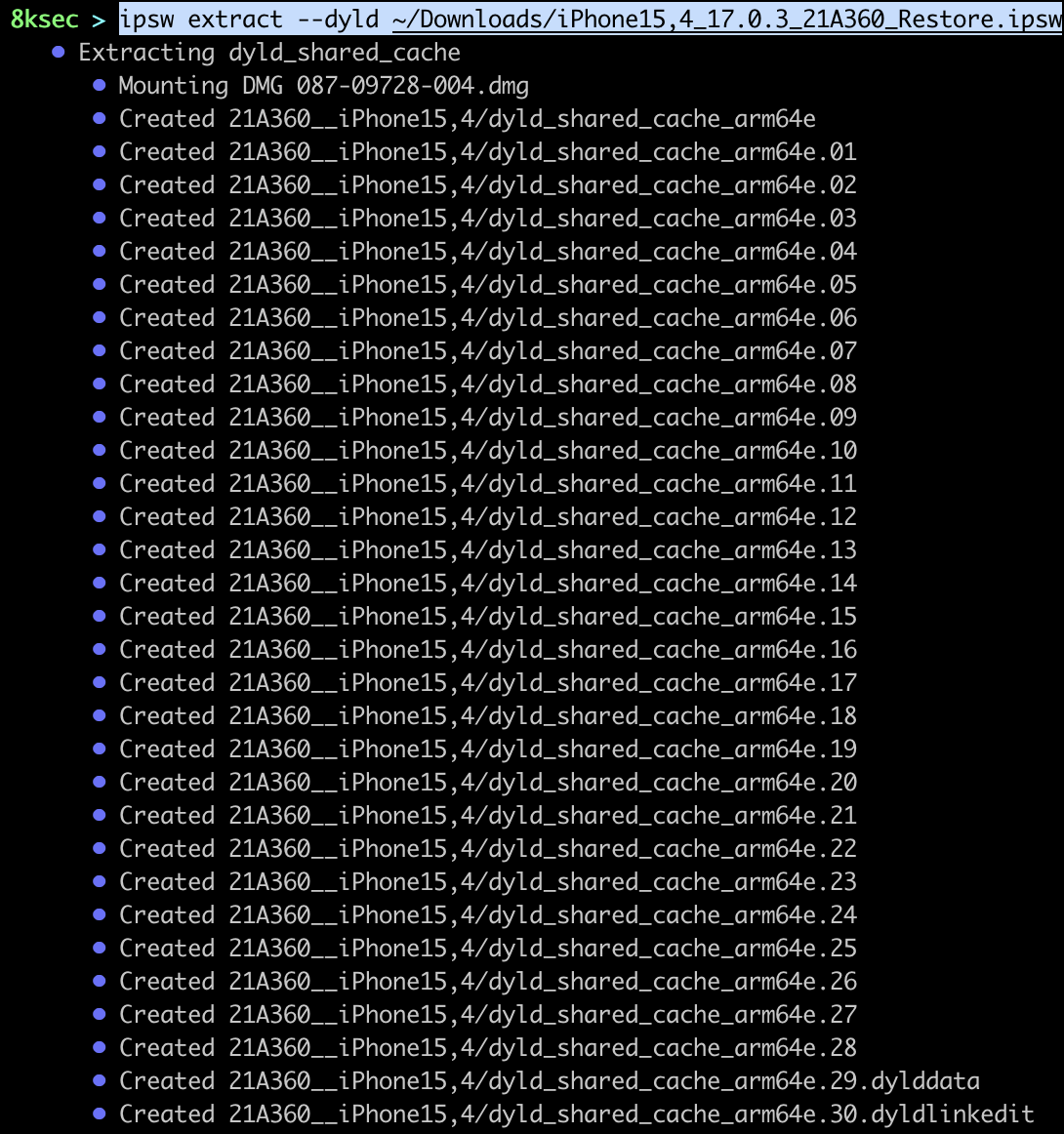 command: ipsw extract --dyld PATH_TO_IPSW_FILE