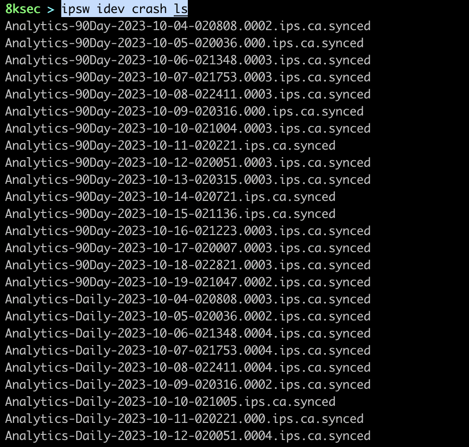 command_to_list: ipsw idev crash ls
