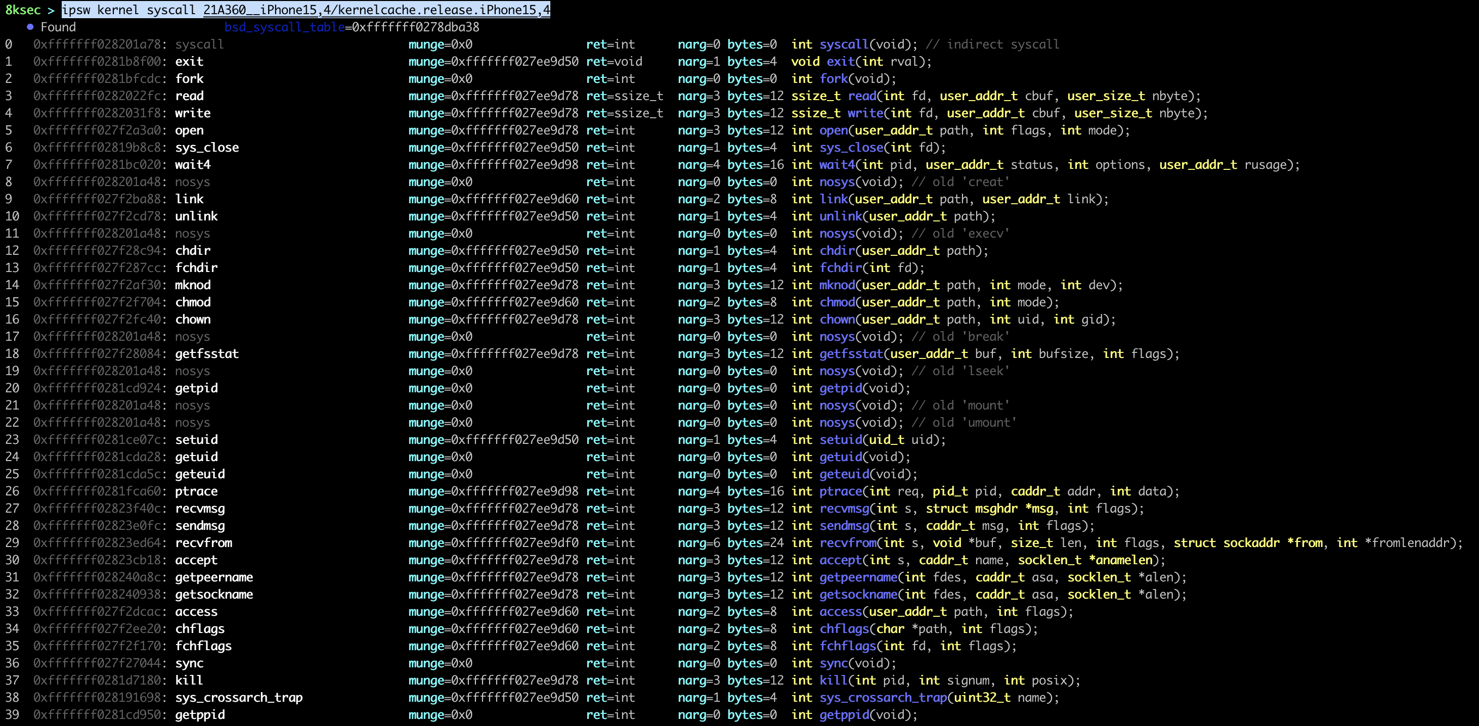 command: ipsw kernel syscall PATH_TO_KERNEL