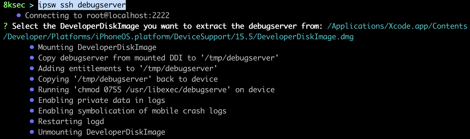 command: ipsw ssh debugserver